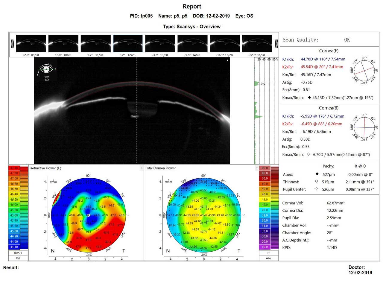 bei Verdacht auf Irregularität führen wir eine computergesteuerte Vermessung der Hornhaut mittels Hornhauttopografie und Scheimpflugkamera durch