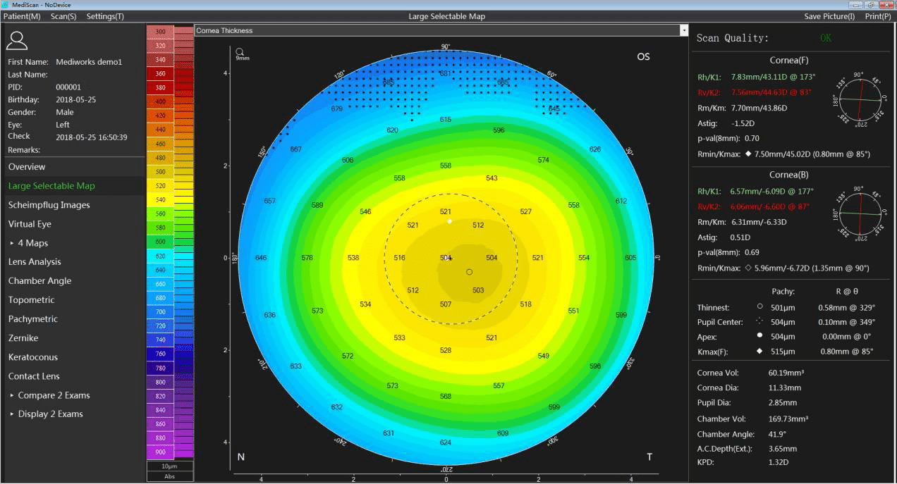 Moderne Bildgebung mittels Scheimpflugkamera und OCT misst die Hornhautdicke (Pachymetrie), die als Korrekturfaktor bei der Messung des Augendrucks von Bedeutung ist. Weiters können wir die Größe des Kammerwinkels messen. Bei zu engem Kammerwinkel kann es zu einem akutem Glaukomanfall mit akuter Augendrucksteigerung und gleichzeitig auftretenden Schmerzen sowie einer Herabsetzung des Sehvermögens an dem betroffenen Auge kommen (Glaukomanfall). Im Anschluß kann eine Behandlung mit einem Augenlaser (YAG-Laser Iridotomie) erfolgen.